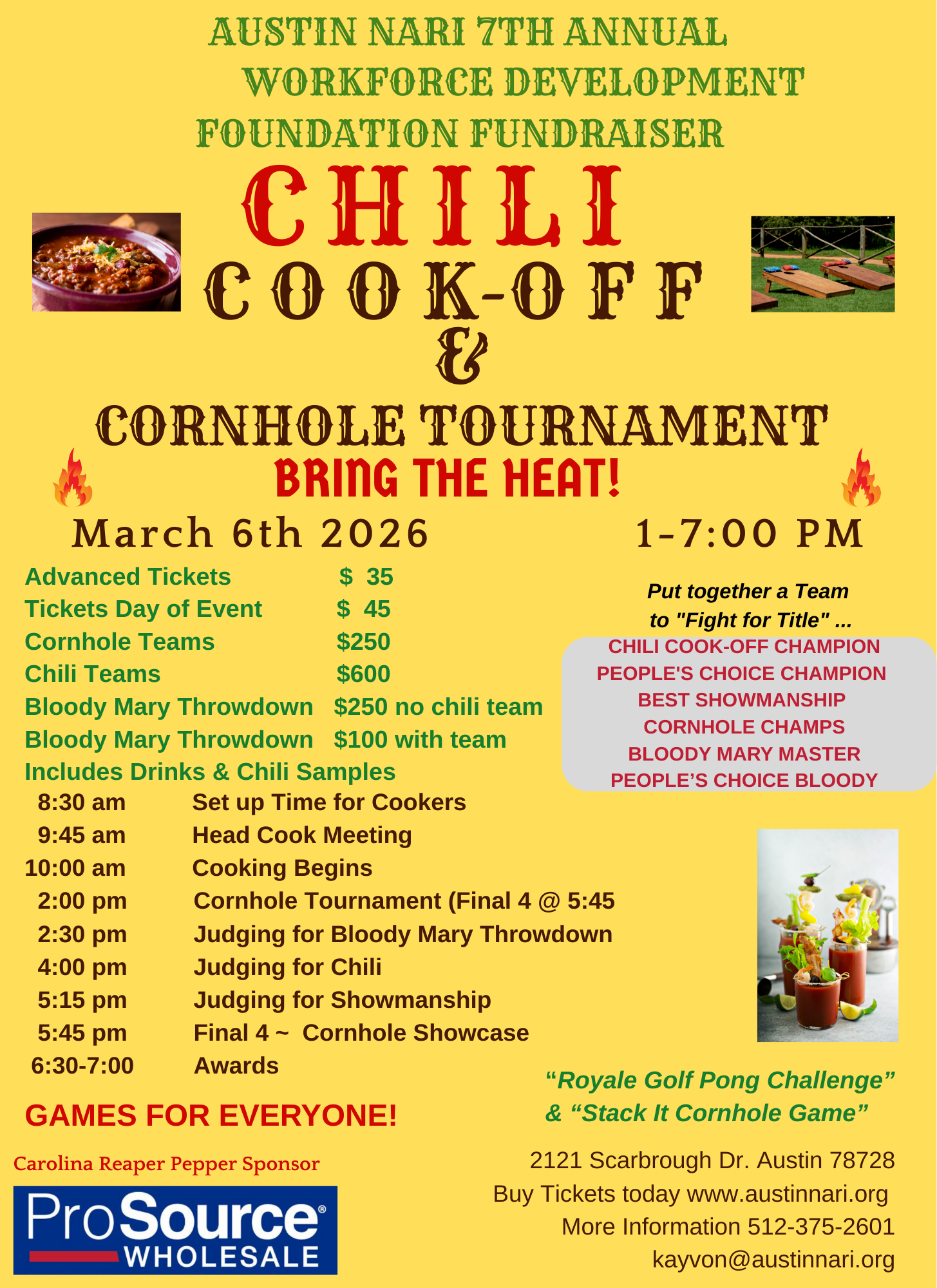 Austin NARI 7th Annual Workforce Development Foundation Chili Cook-off & Cornhole Tournament